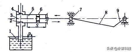 1-儲液槽;2-吸入閥;3-工作室;4-排出閥;5-泵缸;6-活塞;7-十字頭;8-連桿;9-曲柄