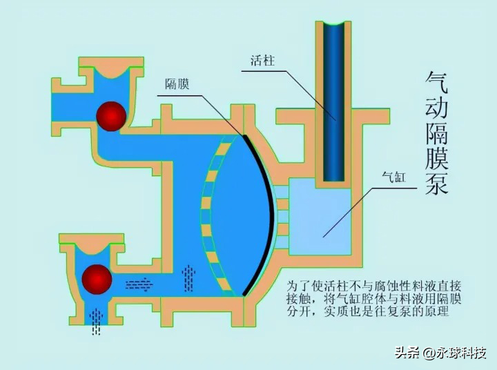 氣動隔膜泵分為單向和雙向兩種。 單向氣動隔膜泵由鋁合金制成,氣動雙隔膜泵主要由鑄鐵、鋁合金、工程塑料和不銹鋼制成。流量比單隔膜泵大。化工原料請選擇工程塑料和不銹鋼。 本文主要介紹單向氣動隔膜泵。