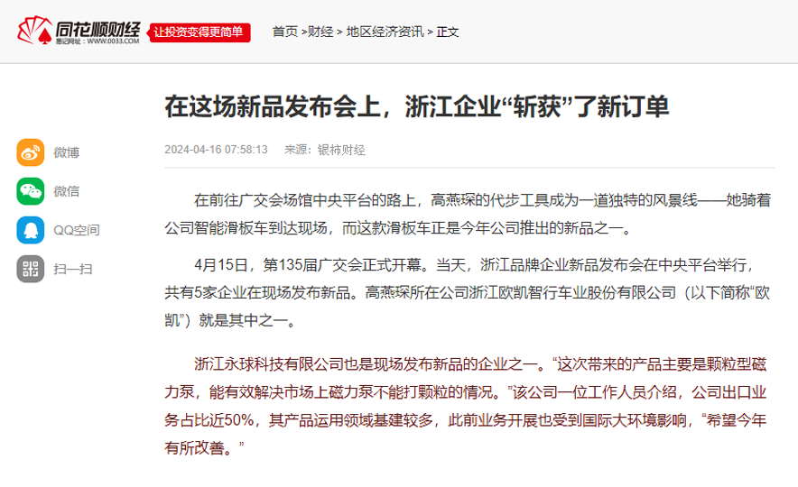 “老”廣交 新風(fēng)向,在這場(chǎng)新品發(fā)布會(huì)上,永球“斬獲”了新訂單